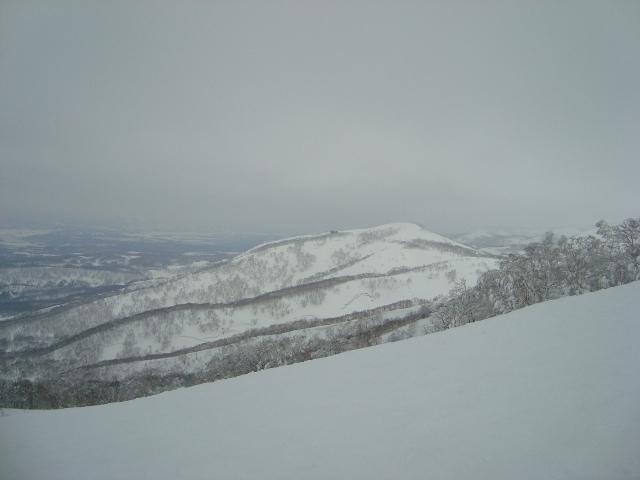 遠くに見える、通称「モイワボウル」は亀裂だらけ。雪崩危険度max。