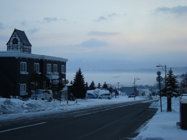 朝6時、冷え込みが厳しく、街は雲海に包まれる。
