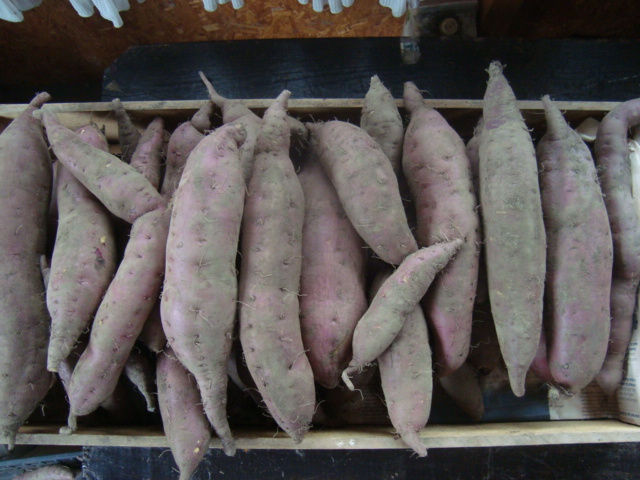 直売所にて鎮座、開始いたしました。「べにあずま」と「パープルスイート」。